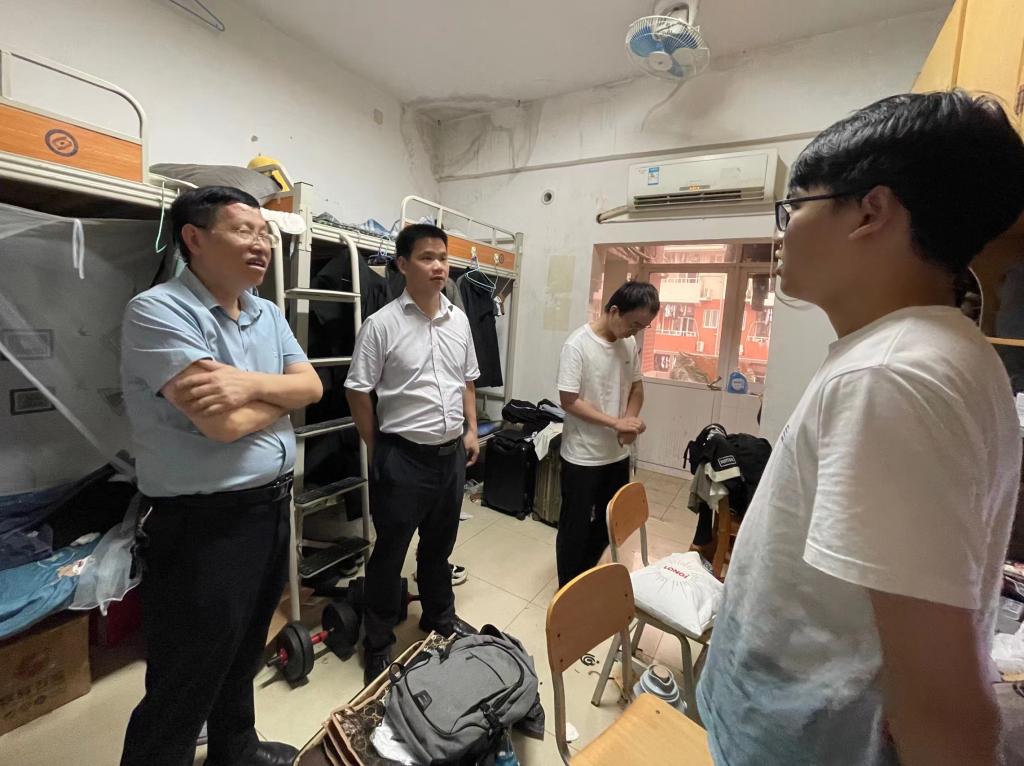 为进一步做好毕业生教育、管理和服务工作,6月20日晚,能动学院党委书记成华、院党委副书记张晓烽、副院长李传常、副院长孙小琴以及专职组织员王汉华等来到毕业生宿舍,走访看望2023届研究生、本科毕业生。