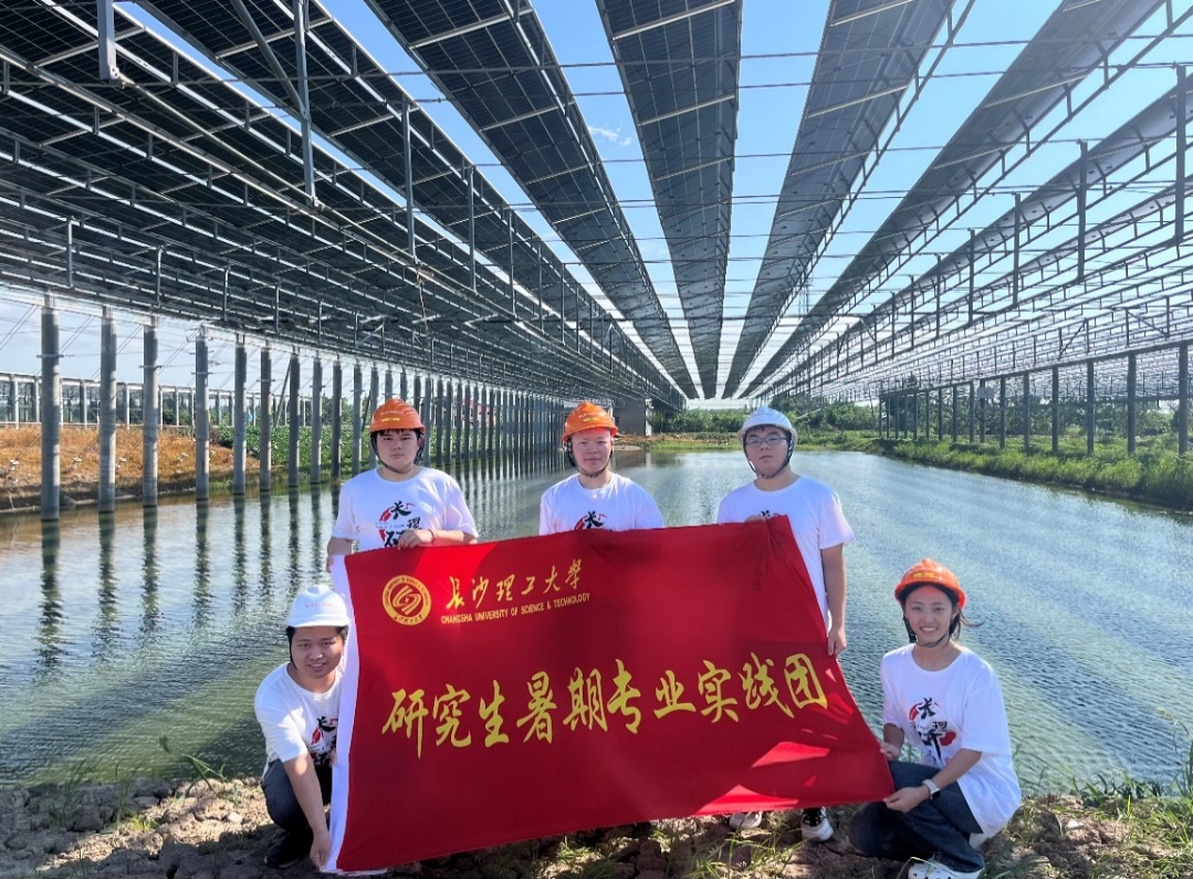 在国家“双碳”目标的驱动下,光伏产业迅速发展,光伏已超过风电成为第一大新能源产业,成为驱动地方经济绿色转型的重要引擎。7月21日长沙理工大学能源与动力工程学院研究生暑期专业实践团(以下简称实践团),带着对“渔光互补”的浓厚兴趣与探索精神,前往华容县塌西湖的渔光互补光伏场站开展实地调研活动。