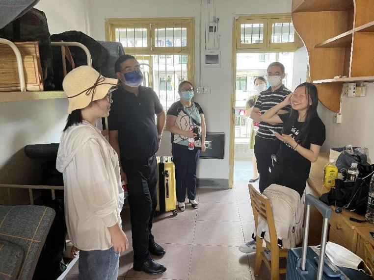 2022年8月27日,在长沙理工大学2022届新生报到的第一天,能动学院党委书记成华、党委副书记张晓烽、副院长田红等人下寝慰问2022级本科生新生。