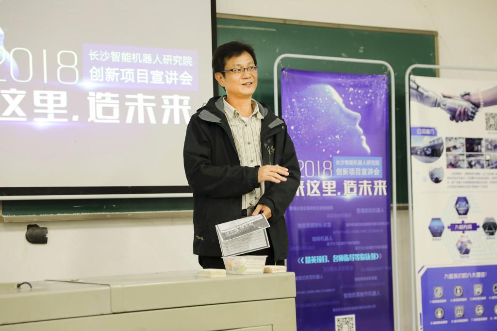 2018年10月16日下午,长沙智能机器人研究院受邀在云塘综合教学楼A101进行创新项目宣讲。能源与动力工程学院副院长刘亮教授、长沙智能机器人研究院院长吕恕,副院长周婷出席,自动化专业15级、16级以及17级同学参加本次活动。