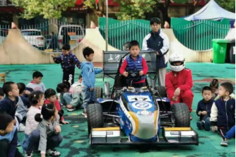 接下来,为了使小朋友和老师们更加直观地感受到赛车的澎湃动力,在车队队员细致的安全检查后,CRT赛车队专职车手驾驶屡获佳绩的赛车在学校跑道及操场进行了直线加速及跑圈等多个动作,CRT赛车的强劲性能在现场展露无疑,现场师生们也得以近距离感受到赛车奔跑带来的激情。