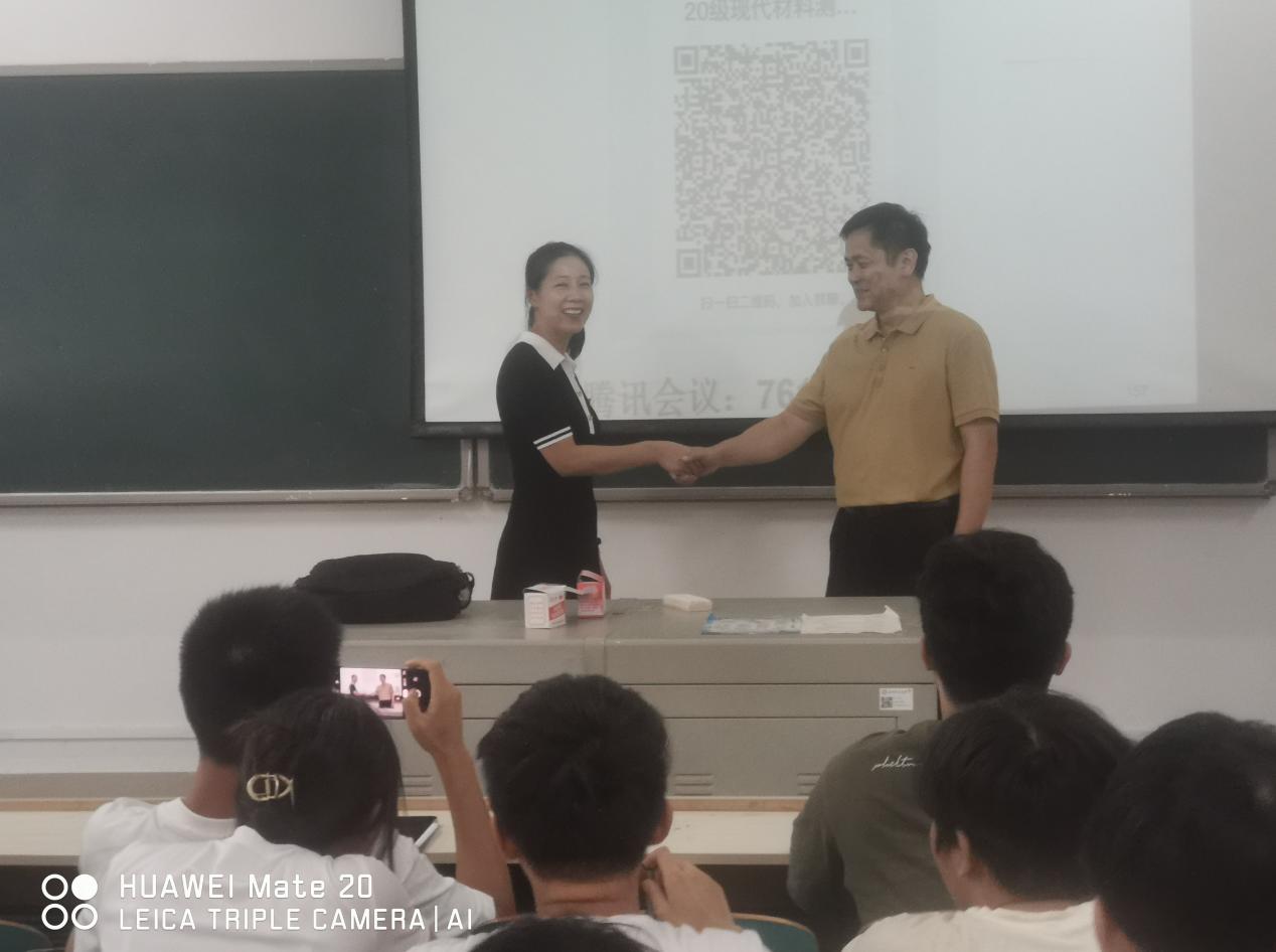 引荐仪式上,三位青年博士的专业导师分别向学生们介绍了三位走上讲台新老师的教育经历、研究方向、个人取得的科研成绩及以后发展规划,并鼓励他们争做“四有”好老师;同时也号召同学们向三位新老师学习,努力做一个积极进取、发奋学习、勇于创新的时代新人。学院党委书记施一满分别为三位新上岗的青年教师佩戴校徽。