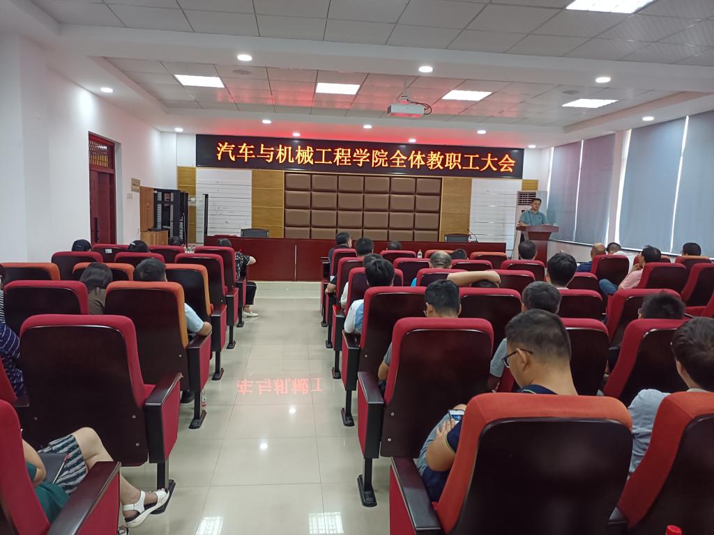 913日下午,汽机学院在工科一号楼B417多功能报告厅召开新学期全体教职工大会。全院教职工参加了会议,会议由党委书记施一满主持。