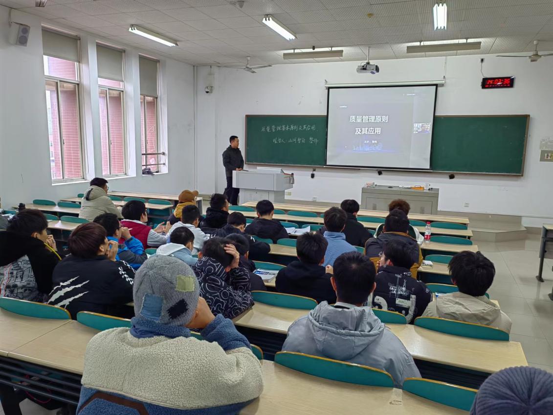 为进一步提高学生产品质量意识和质量管理能力,积极探索实施高素质复合型专门人才培养方式改革,12月1日下午,在云综教A403教室20级机制专业《机械精度设计与检测》课堂,邀请了山河智能装备股有限公司品管本部负责人、《卓越绩效评价准则》国家标准评审员、湖南省机械装备工业质量管理小组成果评委黎伟高级工程师线上为学生做了《质量管理基本原则及其应用》专题讲座。