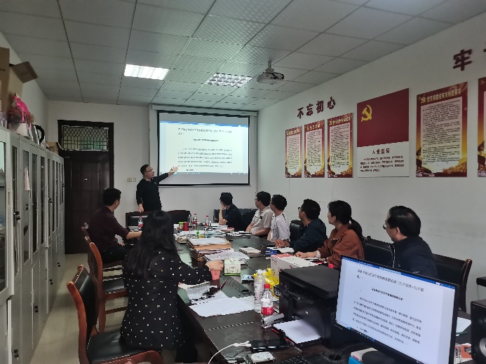 首先,由支部书记周小杰同志给全体支部党员讲题为《习近平总书记关于教育的重要论述》党课。课程主要分享了“九个坚持与九个要求”。讲述“九个坚持”具体为坚持党对教育事业的全面领导;坚持把立德树人作为教育的根本任务;坚持优先发展教育事业;坚持社会主义办学方向;坚持扎根中国大地办教育;坚持以人民为中心发展教育;坚持深化教育改革创新;坚持把服务中华民族伟大复兴作为教育的重要使命;坚持把教师队伍建设作为基础工作。讲述“九个要求”包括:要在坚定理想信念上下功夫;要在厚植爱国主义情怀上下功夫;要在加强品德修养上下功夫;要在增长见识上下功夫;要在培养斗争精神上下功夫;要在增强综合素质上下功夫;要树立健康第一的教育理念;要全面加强学校体育、美育工作;要在学生中弘扬劳动精神。课程内容让在座的教工党员们再次审视了自己的教育观,用习近平总书记关于教育的重要论述和理论指导今后的教书育人实践。