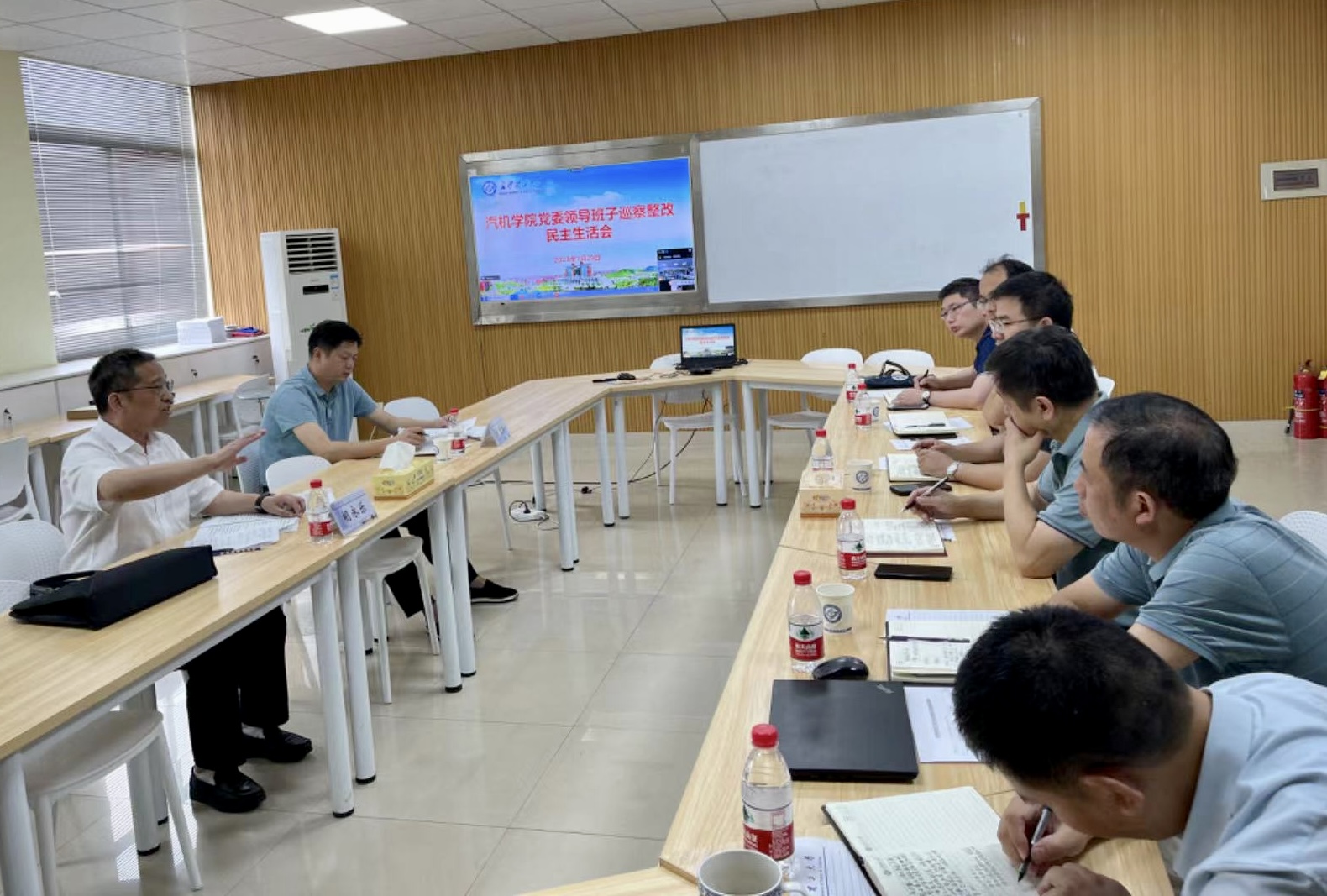 7月29日下午,汽机学院党委领导班子召开巡察整改民主生活会。长沙理工大学党委委员、副校长胡永乐和纪委副书记、监察处处长方文彬到会指导。