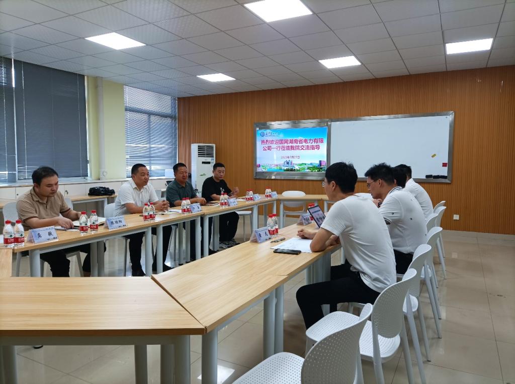 7月27日上午,国网湖南省电力有限公司建设部二级领军专家江雷一行5人来我院进行产学研合作洽谈。学院副院长尹来容教授及教师代表胡波副教授、黄龙博士、许都博士等参加此次交流会,会议由尹来容主持。
