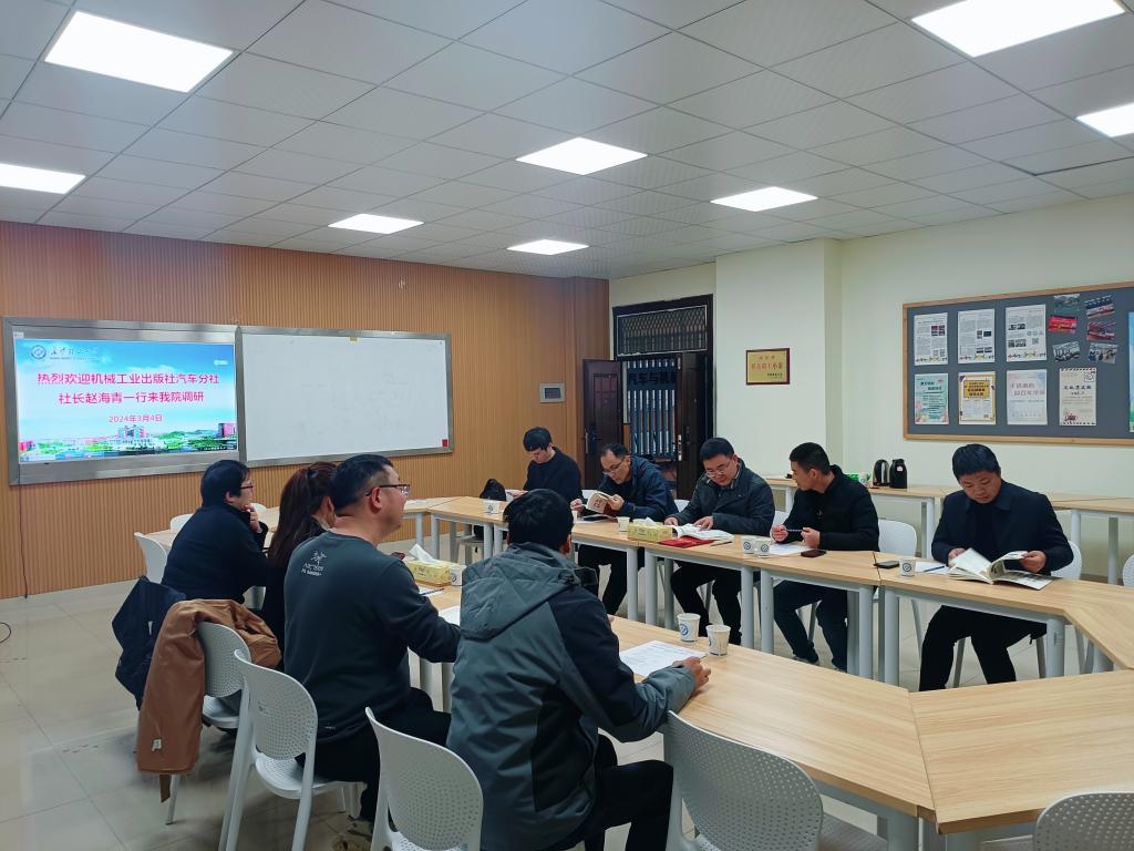 胡林对机械工业出版社汽车分社人员的到来表示热烈欢迎,并介绍了学院基本情况。赵海青介绍了调研目的和机械工业出版社汽车分社的建设发展状况,并表加强与学院合作意向愿意学院提高教材和学术专著水平、促进教育综合改革和创新发展提供更大支持。双方就汽车专业专著和教材出版、高水平出版资助、教学教材配套资源在线共享等工作进行了深入交流。