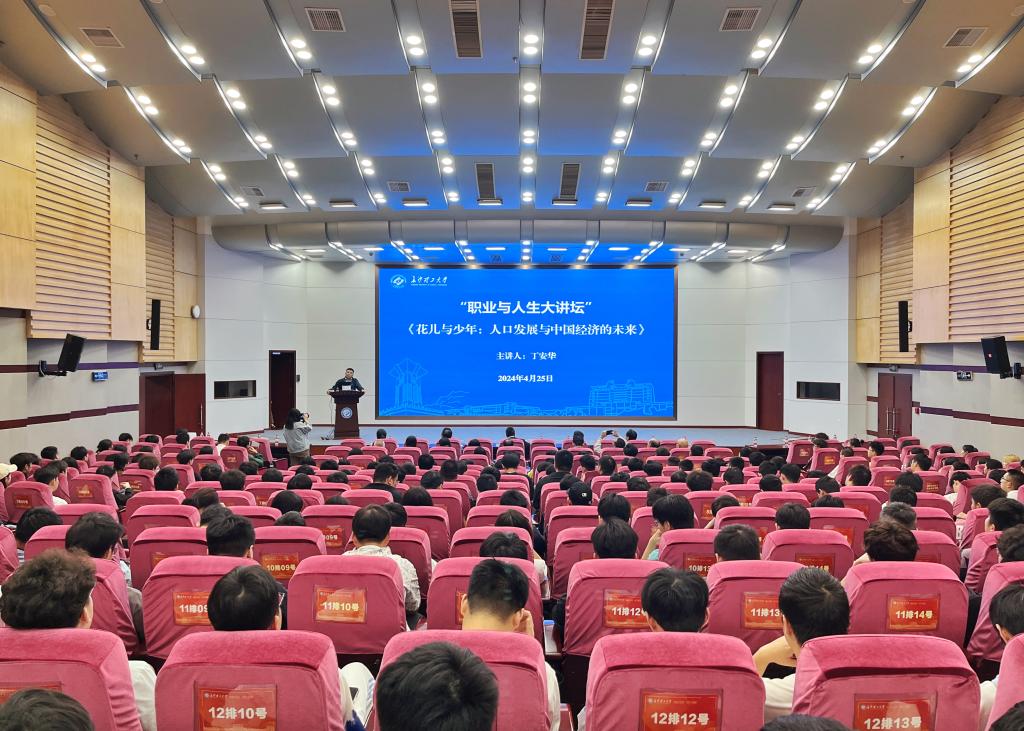 4月26日,招商银行首席经济学家、雷竞技官网汽车运用工程专业84届校友丁安华先生应邀作了题为《花儿与少年:人口发展与中国经济的未来》的学术讲座。副校长胡永乐教授、校友中心唐青主任、汽机学院院长胡林等以及来自汽机学院、经管学院300余名师生参加了此次讲座。