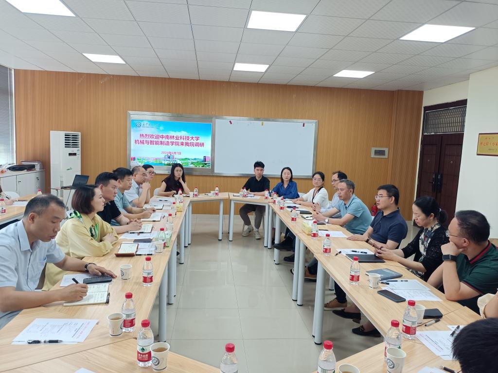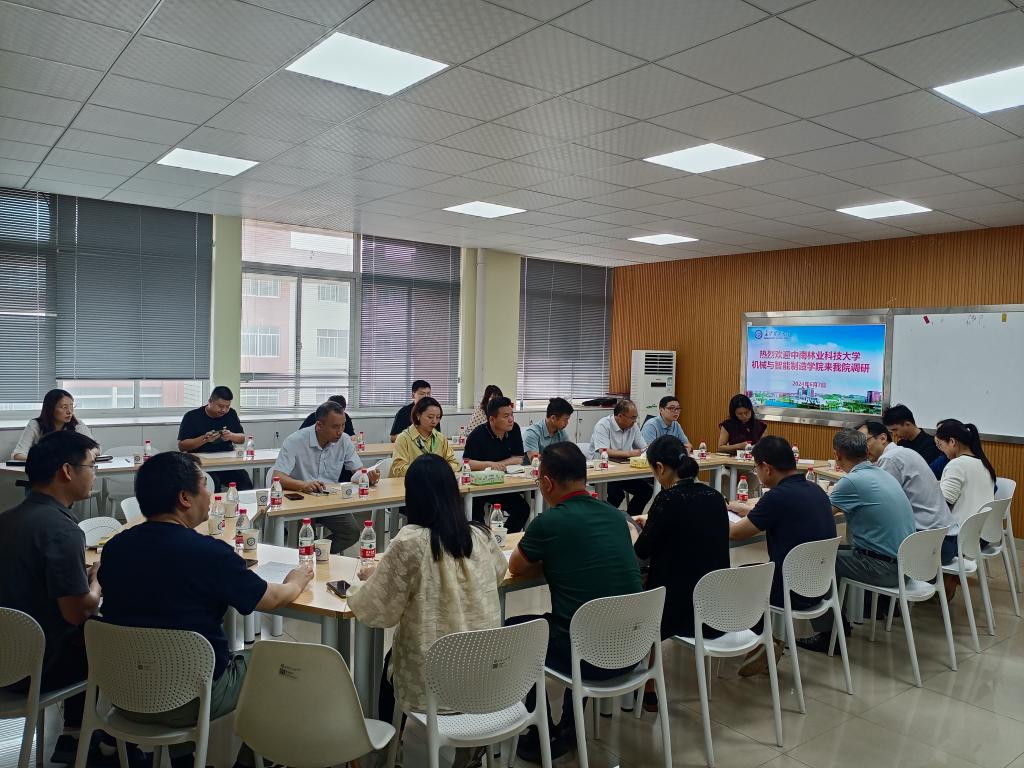 6月7日上午,中南林业科技大学机械与智能制造学院副院长(主持)文韬一行12 人来我院开展交流调研。会议在工一B411会议室举行,学院党委书记孔伟红,院长胡林,副书记兼副院长周小杰,副院长毛聪、唐宏宾,机电工程系主任、支部书记、副主任及教师代表参加了调研会议。会议由唐宏宾主持。