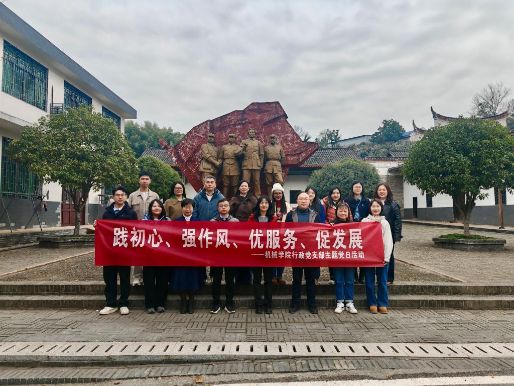 为深入学习贯彻党的二十大和二十届历次全会精神,巩固拓展学习教育成果,进一步增强行政党支部党员队伍的凝聚力和战斗力,强化宗旨意识、改进工作作风、提升服务效能,2025125日,机械学院全体领导班子成员、行政党支部全体党员、入党积极分子辅导员赴浏阳市红色教育基地,开展了“践初心、强作风、优服务、促发展”主题党日活动。
