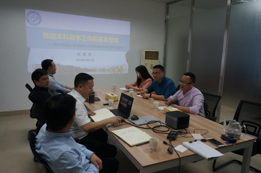 杜荣华对常熟理工学院汽车工程学院陈庆樟院长一行的到来表示欢迎,杜荣华详细介绍了学院的专业建设、专业认证实施情况、学科建设、师资队伍建设、实验室规划与建设等情况,与会其他人员就相关工作作了相应补充说明。会上,调研双方进行了交流和讨论。