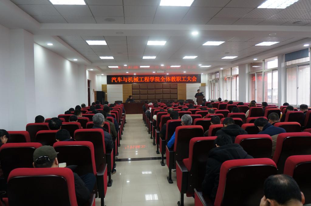 院长杜荣华解读了《汽车与机械工程学院2019年工作要点》,2019年学院工作主要是:要加强党的全面领导,着力提高党组织的引领力;贯彻落实全国教育大会精神,不断提高人才培养质量;构建科研团队体系,大力提升科技创新能力;着眼博士点申报,大力提升学科建设水平;深化“匠心学堂”建设,服务学生主体发展,积极构建完善的“三全育人”体系;他强调,学院正处在建设的关键时期,在下一步建设中需要全体老师共同努力,要攻坚克难、开拓创新,为学院发展做出新的更大贡献。