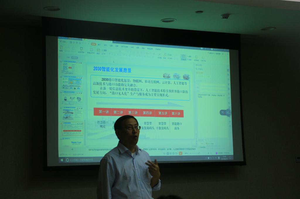 宓为建博士的研究课题是《AI赋能自动化集装箱码头——2030发展愿景》他分析了自动化集装箱码头发展历程,提出了自动化集装箱码头的发展理念,认为自动化集装箱码头需要技术创新有3个方面:物联网与智能感知、5G时代与远程控制、移动端与人机协调。宓博士还指出了智能化转型方面面临的主要问题包括科学问题和相关关键性技术问题。他表明了2030智能化发展的愿景:物联网、移动互联网、云计算、人工智能等高新技术与港口功能的完美结合。