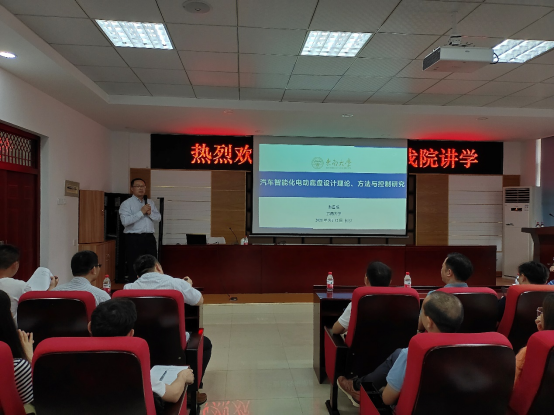 2021年5月12日17:00,东南大学机械工程学院首席教授殷国栋应汽机学院邀请,在工科一号楼B417多功能报告厅举行了主题为“汽车智能化电动底盘设计理论、方法与控制研究”的学术报告。此次报告由汽机学院副院长胡林主持,汽机学院院长杜荣华,长沙理工大学科研部副部长胡宏伟,汽机学院副院长毛聪、何志勇等教师及学院部分研究生参加了本次报告会。
