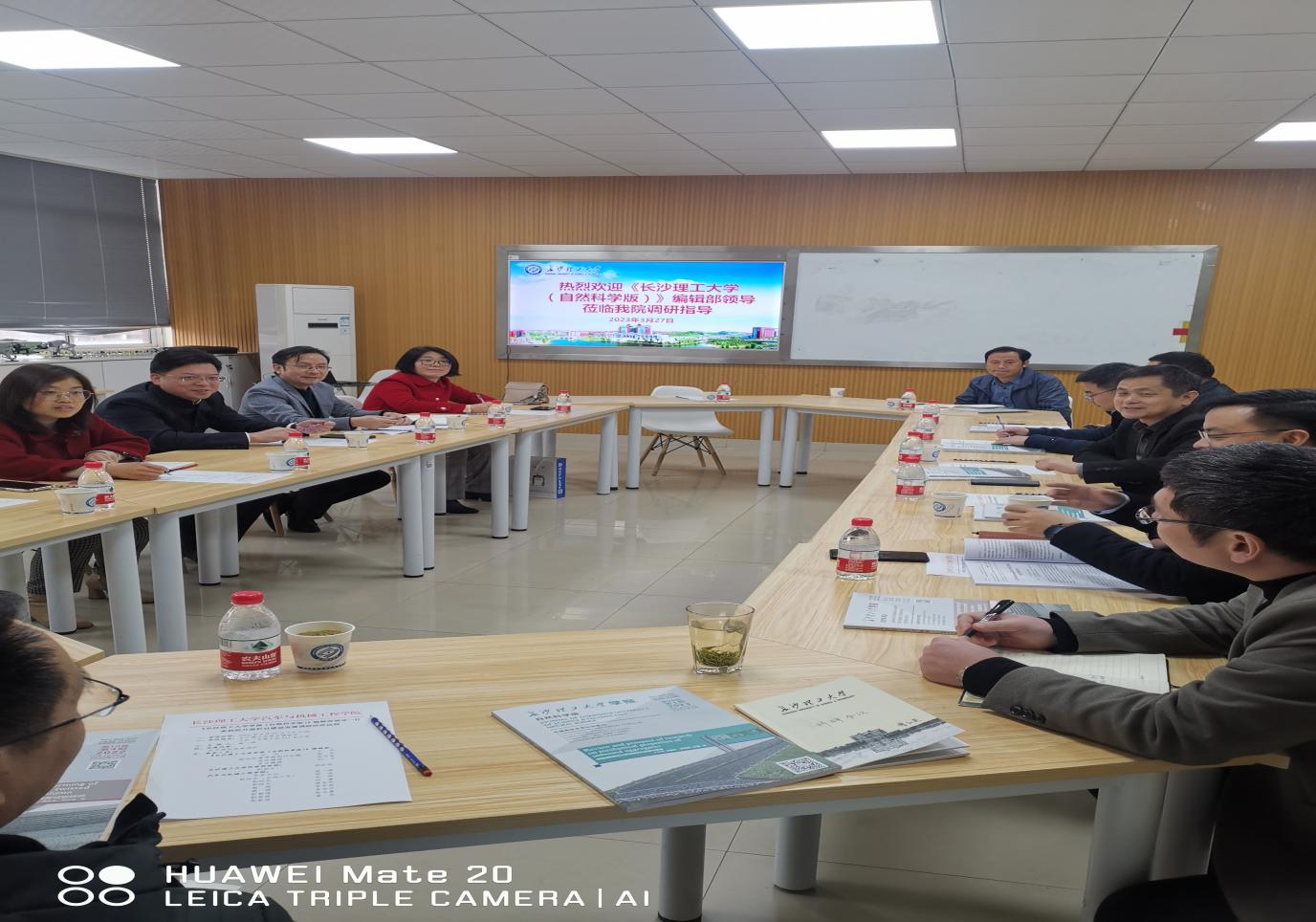 3月27日下午,《长沙理工大学学报(自然科学版)》(以下简称“学报”)期刊社社长王宏、副社长赵冰等一行4人来我院就学报栏目建设发展进行调研交流。学校科研部副部长胡宏伟、学院党委书记施一满、副院长胡林(主持工作)、副院长毛聪、副院长刘鑫以及学院教师代表加了此次座谈会。会议由施一满书记主持,会议主题为学习贯彻党的二十大精神,助力学报高质量发展,构建强有力的学术共同体。