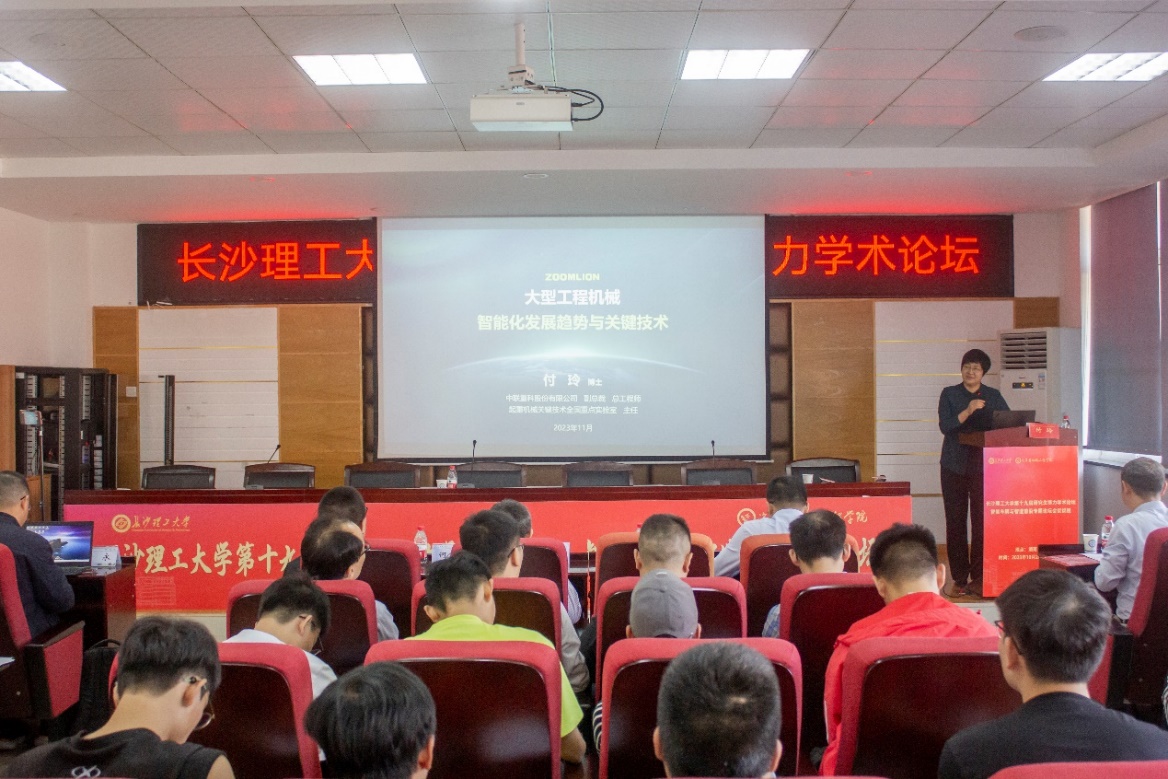 2023年11月1日,汽机学院特聘院长,国务院政府特殊津贴专家,中联重科党委委员、副总裁兼总工程师,中国工程机械学会副理事长付玲博士出席雷竞技官网第十九届研究生博力学术论坛——“智能车辆与智造前沿”专题论坛并作报告。本次报告由汽机学院副院长毛聪教授主持,副校长胡永乐、研究生院副院长(主持工作)何忠明、副院长(主持工作)胡林、副书记唐宏宾、副院长刘鑫以及学院相关教师、研究生及本科生参加了本次报告会。