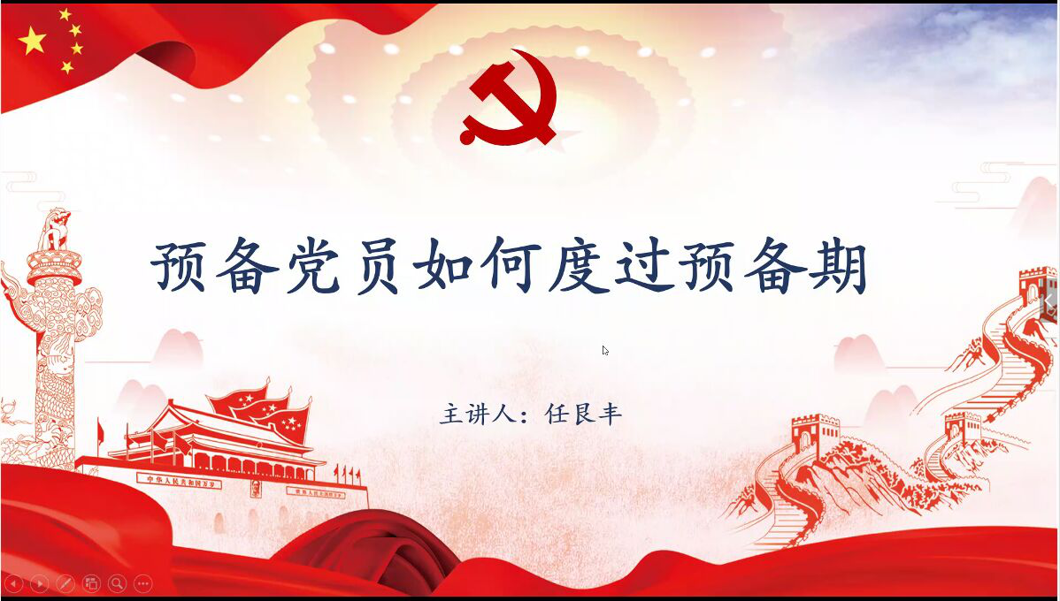 接着,校党委组织部任艮丰老师讲授党课《预备党员如何度过预备期》。任艮丰老师对党员预备期的设立原因、管理模式和注意事项等进行了重点讲述,并结合基层党员们在疫情下冲锋在前的感人故事,教导同学们要自觉履行党员义务,积极发挥先锋模范作用,为更好的成为一名正式党员做好充分的准备。