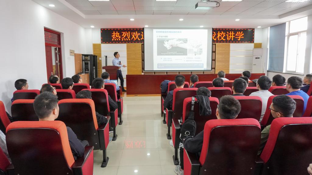 报告以机构构型是机械装备的基因、机器人制造加工模式与装备构型、面向工程实际进行机构构型创新三个专题展开。李秦川教授通过列举动力助力外骨骼、可折展多面体机器人、仿生蝙蝠机器人等实例带领聆听者们从机构学理论畅游到工程实际,使在场师生有效的理解结构-功能-性能三者之间的内在联系及机构学于前沿科学的应用。提问环节,在场师生争相向李秦川教授提问,场面十分热烈,李秦川教授一一解答。最后,李秦川教授以积极主动的沟通、脚踏实地的奋斗、强身健体的本领三点建议赠予在座的全体研究生。