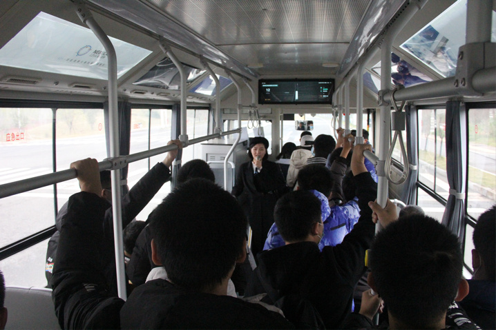 在国家智能网联汽车(长沙)测试区工作人员的带领下,同学们和老师共同乘坐自动驾驶公交车体验了国家智能网联汽车(长沙)测试区。在全程7.8公里的测试区上,自动驾驶公交车能通过物联网获取道路信息,自动选择最优路线,并通过雷达检测,有效识别周围障碍物,作出最合理反应。