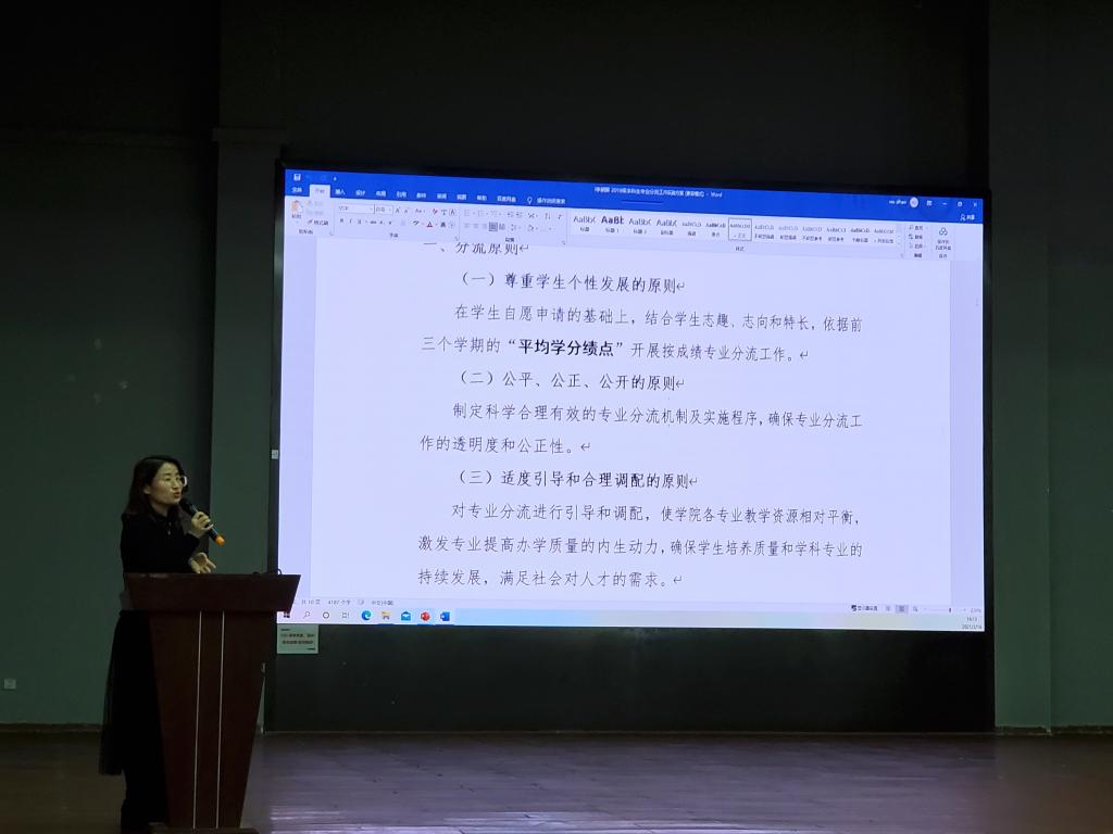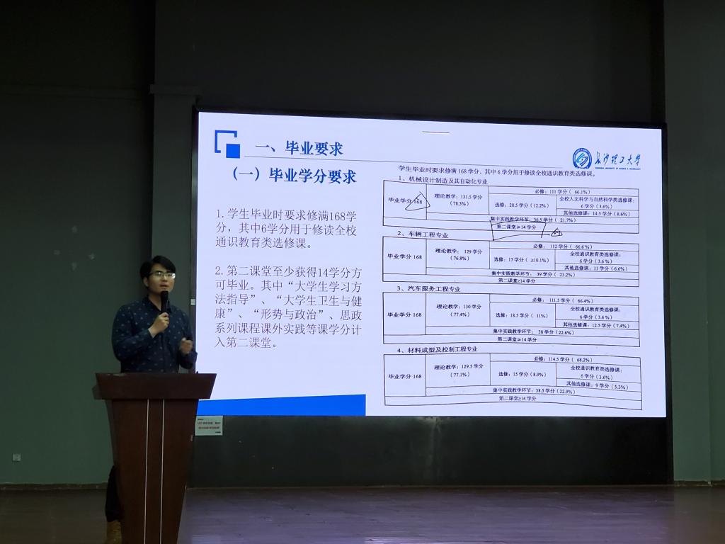 2021年3月16日下午,汽机学院于云塘校区学活报告厅举行2019级专业分流答疑大会暨年级大会。机电工程系李亚非老师、汽车工程系伍文广老师、材料成型与控制工程系周小杰老师、教务办李朝晖老师及19级辅导员王丽丽、王金行老师出席本次会议。参与此次大会的还有17级优秀学长学姐陈世冰、吴致诚、阳学恒以及机械类2019级全体同学。