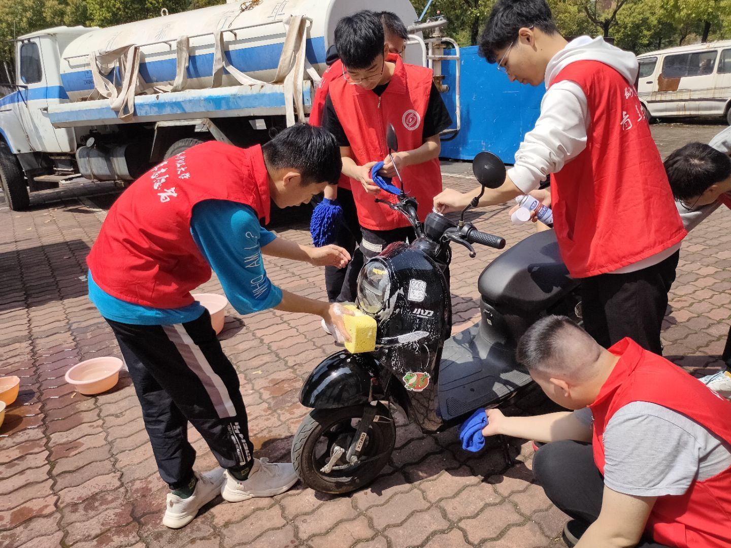 洗护服务包含了清洗、上油、打气等基本服务。本次活动中,志愿者们共洗护了68辆非机动车,其中电动车57辆,自行车11辆,服务人群遍及各个学院,获得了一致好评。本次活动的开展,让志愿者们学习到非机动车洗护的专业知识,也帮助同学们清洁了车辆、维修车辆存在的一些小问题,而对于社会,则减少了资源的损毁,更加绿色环保。