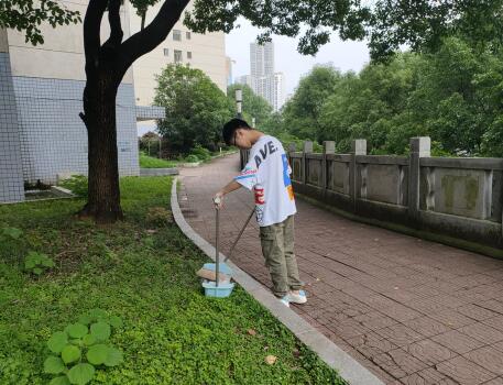 志愿者们自行携带清扫工具,准时到达集合地点。资助部干事胡晓静分配了任务后志愿者们便分散开始清扫。本次清洁的主要对象是金盆岭校区西苑一栋和西苑二栋学生公寓草丛中的白色垃圾。在将近30分钟的清扫中,志愿者们不怕脏不怕累,清扫时认真仔细,不留死角。胡晓静表示美丽校园的构建不仅要在清理,更重要的是大家养成垃圾分类,随手入篓的好习惯,既能保持卫生环境,又能够展现学生们的良好素质。清理完成后,全体志愿者合影留念。