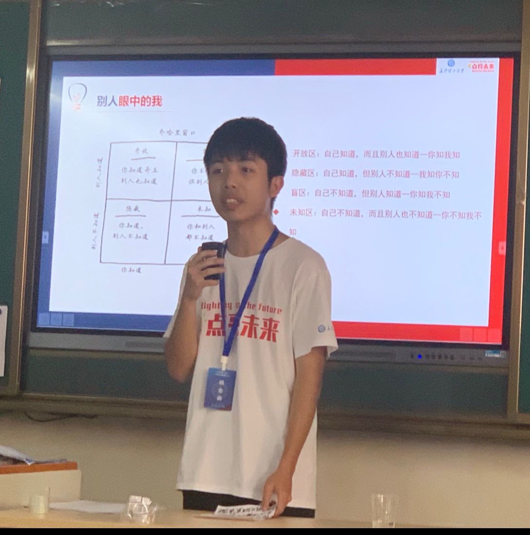上午8点到11点30分,由张名颖同学引领同学们走入主题“认识自我”,他主要引导同学们能通过自我介绍,说出自己成长历程的重要事件,来更加充分地面对自己,了解自己。有许多同学都积极上台,发自心扉地讲述自己的故事,并谈了谈自己从中的收获和感悟。