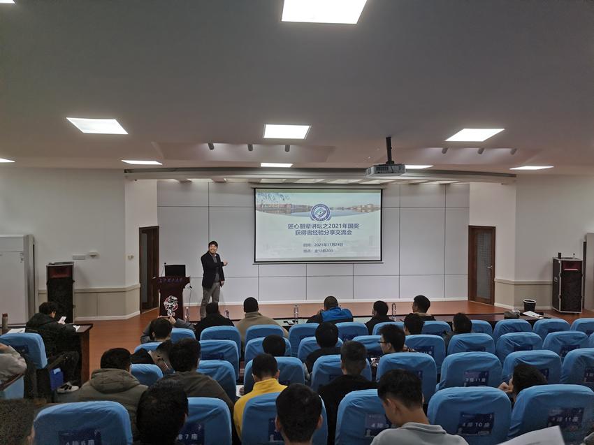 2021年11月24日20:30,汽车与机械工程学院在金盆岭校区12号教学楼200举办了研究生匠心朋辈讲坛之国奖获得者经验分享交流会,本次讲坛由王开心主持,本次讲座邀请了四位优秀研究生代表--周熙钦、张浩、刘北、蔡炎林,为大家分享学习心得、学习方法,从而激发同学们的学习热情,促使同学们对未来做出合理的规划,进一步提高研究生专业科研能力,营造更好的学术氛围。