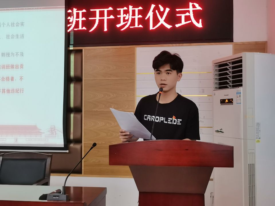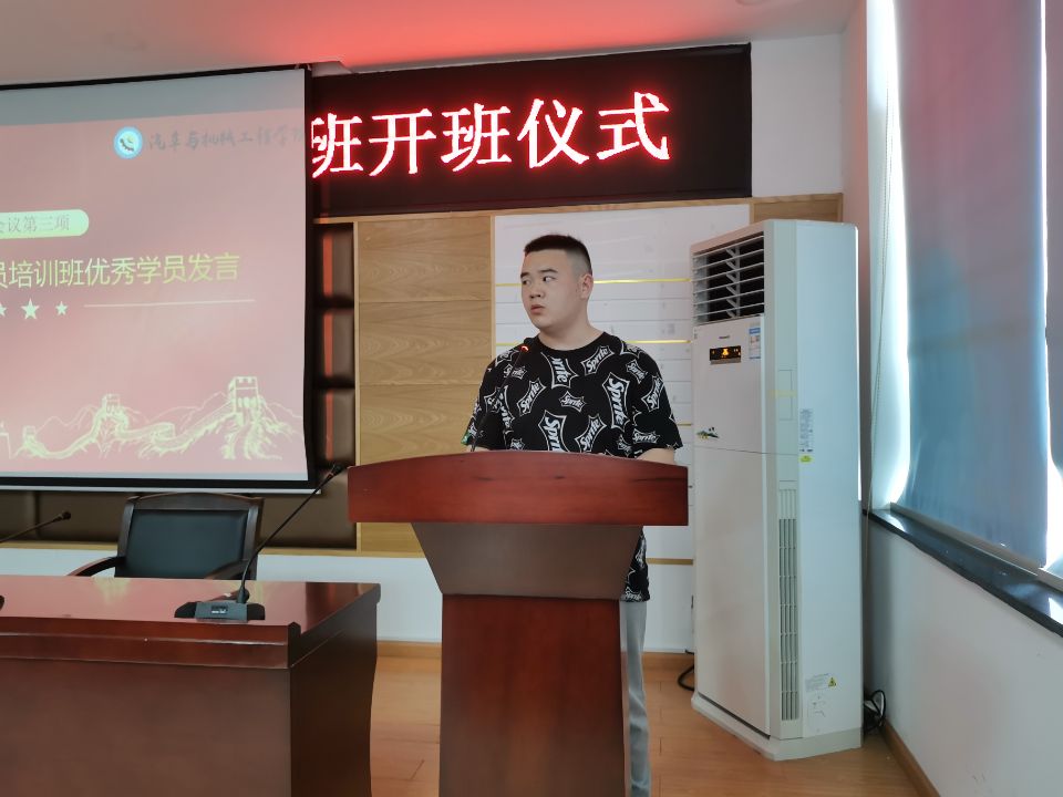 第24期培训班优秀学员代表张嘉诚上台发言,他建议大家不仅要认真学习理论知识,更要提高自己的思想素质,严格遵守培训班对学员的培训要求,养成良好学习习惯, 学习期间做好笔记,课后及时巩固,并将理论知识落实于实际。