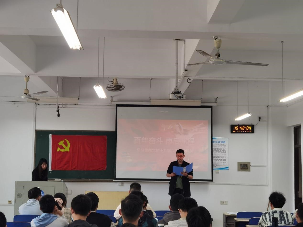 4月19日15:40,马克思主义学院副院长郭华副教授为汽机学院第39期入党积极分子讲授《党的十九届六中全会精神解读》,90名入党积极分子认真听取了此次党课。