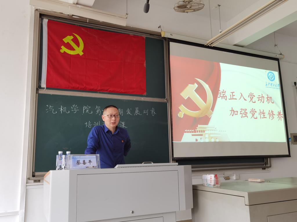 4月26日14:00,汽机学院第十六期发展对象培训班第五次党课于工一B207正式开展并圆满结束。本次党课为学员授课的是蔡喜平老师,其主讲内容为《端正入党动机、加强党性修养》。