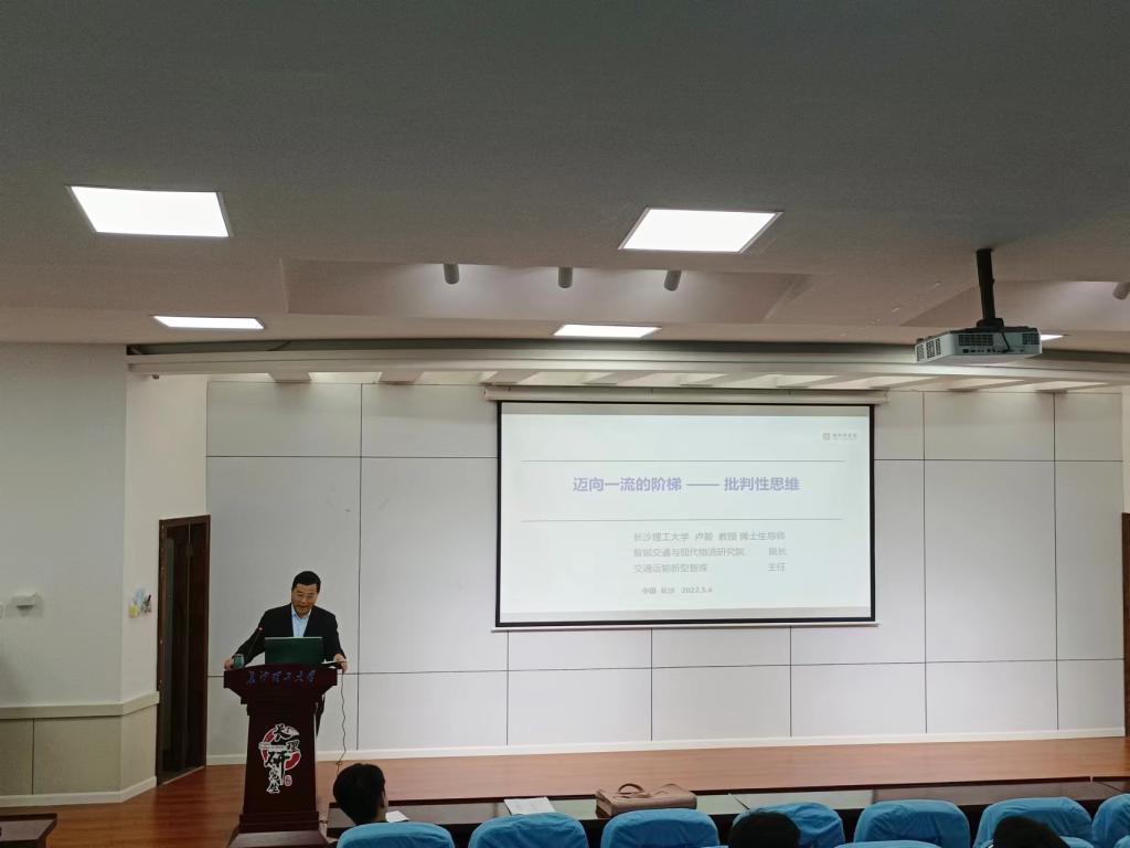 5月12日晚19:00,交通运输工程学院卢毅教授受邀参加长理匠心学堂通识讲坛,于金盆岭校区12教200教室为同学们主讲“迈向一流的阶梯——批判性思维”专题讲座。该讲座旨在引导雷竞技官网大学生有意识主动学习,培养自己的批判性思维,找到原因,缩小雷竞技官网大学生与国内一流大学大学生能力之间的差距。院长杜荣华出席了此次讲座,讲座由辅导员刘子硕主持。