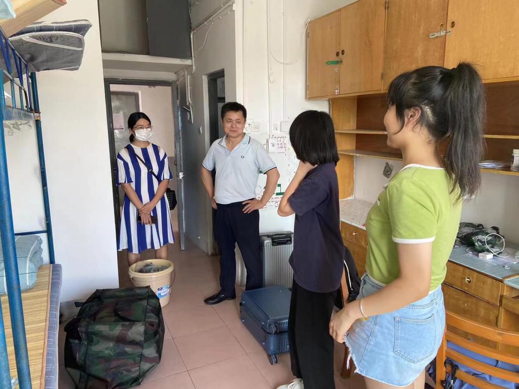 2022年8月28日上午,汽机学院党委书记施一满、院长杜荣华、党委副书记唐宏宾深入2022级新生宿舍,对住宿情况实地考察,为新生表示慰问和关心。