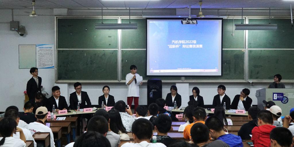2022年9月24日19:30,汽机学院于金盆岭校区十二教500教室举行了迎新杯辩论赛表演赛。本次辩论以“另一半劝你睡觉和陪你熬夜哪个更好”为辩题,其中正方支持“另一半劝你睡觉更好”的观点,反方支持“另一半陪你熬夜更好”的观点。到场评委有第二十届分团委学生会轮值主席祝浩天、郑昆博、师子敖、佘长坤和奇迹辩论队成员胡仁文。本次辩论赛由高智达主持,140余名同学到场观看。