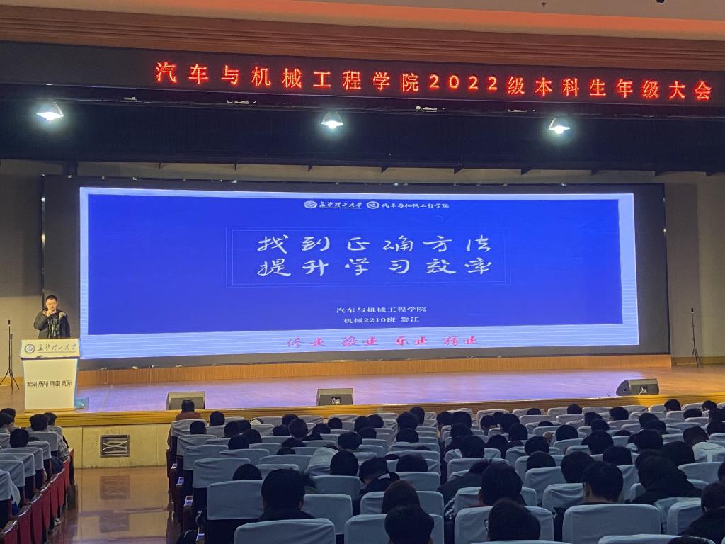 辅导员李凯辉对2022-2023学年秋季学期学情进行分析,机械类专业黎江从预习、听课、复习、作业、总结五个环节分享了学习干货,测控技术与仪器专业钟心宇则从高数、英语、C语言等课程的具体学习方法上分享了学习经验。