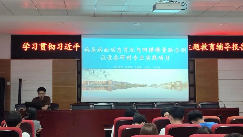 在此次分享会中,首先是由“路基路面动态弯沉与回弹模量联合测试设备研制”项目团队的李志祥对他暑期实践的流程做出了详细的介绍。他通过一个精彩的视频分享了他们团队实践项目的主要内容,以及详细地介绍了项目的计划及安排,让同学们对实践活动有了一个清楚的了解。然后,他着重分享了他参加实践活动时的经验,他认为,明确分工非常重要,是一个团队实践活动顺利进行的基础。第二位做出精彩分享的是黄静,她所在的团队的实践项目是“运营铁路隧道灾害识别与治理关键技术”。她主要介绍了实践项目的过程以及过程当中出现的一些问题,以及详细的列出结项材料所包含的内容,为同学们在今后实践活动中的材料汇总提供了方向。她还表示,实践成果的媒体报道非常的重要,需要高度重视。