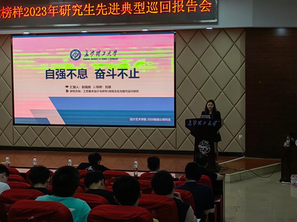 5月17日晚19点,由汽机学院和艺术学院承办的“研途榜样”长沙理工大学研究生先进典型巡回报告会在云塘校区文科楼A200举行,来自汽机和艺术学院一百余名师生代表到场聆听。