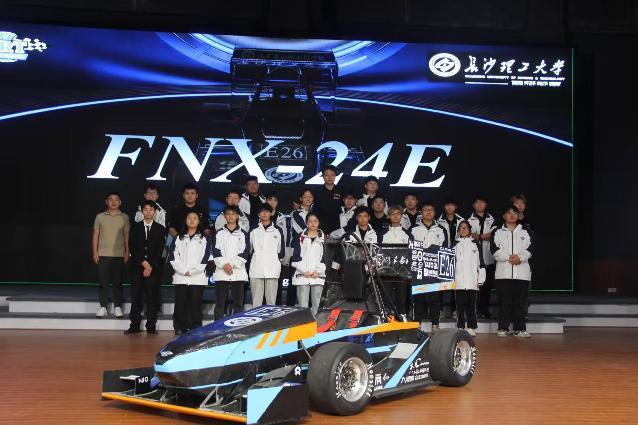 此外,学院还隆重举行了2024年度长沙理工大学方程式赛车队新车发布仪式。学院党委书记孔伟红、湖南三一集团副总经理兼三一职院校长胡江学、湖南申亿精密零部件股份有限公司董事长王凯波及学院党委委员伍文广共同为新车揭幕,现场气氛热烈非凡,掌声经久不息。