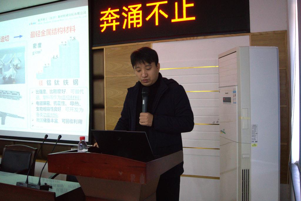 本次讲座由航天科工(长沙)新材料研究院有限公司肖宏超副院长主讲,吸引了众多师生的关注和参与。在讲座中,肖院长首先从当前重大工程项目对装备轻量化的迫切需求出发,指出在追求更高效、更节能的时代背景下,装备轻量化已成为各领域亟待解决的关键问题。基于此,他引出了被誉为“最轻金属结构材料”的镁合金,详细介绍了镁合金在航空航天、汽车制造、电子产品等领域的广泛应用和巨大潜力,并且从制备方法与选用原则上分析其优缺点及改进措施。随后,肖院长结合自己的科研工作经历,分析与总结了新质生产力的三个特点,即创新型、融合性和引领性。他强调,科技创新是推动社会进步的原动力,只有不断追求技术突破和创新,才能在激烈的国际竞争中占据一席之地。他还指出,融合性体现在多学科、多领域的交叉融合上,只有将不同学科的知识和技术有机结合,才能孕育出更多的创新成果。最后,他强调了引领性的重要性,即通过技术创新引领产业发展,推动生产力的持续进步。