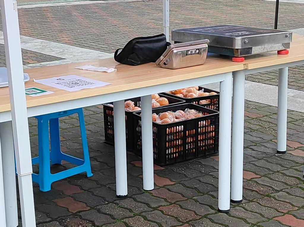 活动期间,志愿者们热情高涨,早早来到前坪布置摊位,搬运和摆放橙子,一个个金黄饱满的橙子在阳光下闪耀着诱人的光泽。志愿者们向过往的师生耐心介绍橙子的产地、口感和助农意义。他们的努力吸引了众多人驻足购买,大家纷纷慷慨解囊,用实际行动支持着助农事业。