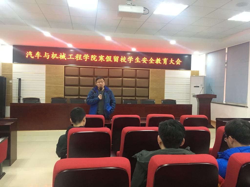 为使学院寒假留校同学度过一个安全而有意义的寒假,1月16日10:00,汽机学院召开“寒假留校学生安全教育大会”。辅导员宋新主持此次大会,学院党委副书记靳攀科、分管研究生工作副院长毛聪、各年级辅导员、车队指导老师伍文广及全体留校本科生、云塘校区研究生参加本次会议。