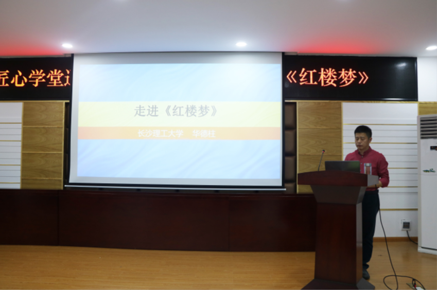 2018年5月3日晚7点,汽机学院于工科一号楼B-417举办第三期匠心学堂“通识讲坛”,特邀长沙理工大学文法学院华德柱教授作走进《红楼梦》讲座。来自汽机学院共计150位师生参加了本次讲座。