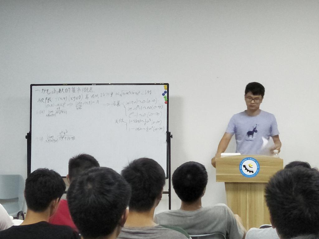 2018年6月20日晚19:00-21:00,朋辈课堂之高等数学在行五活动室开讲,本次朋辈课堂的主讲内容是多元函数微分法及其应用,由2015级的卜博阳和袁清文两名党员主讲。