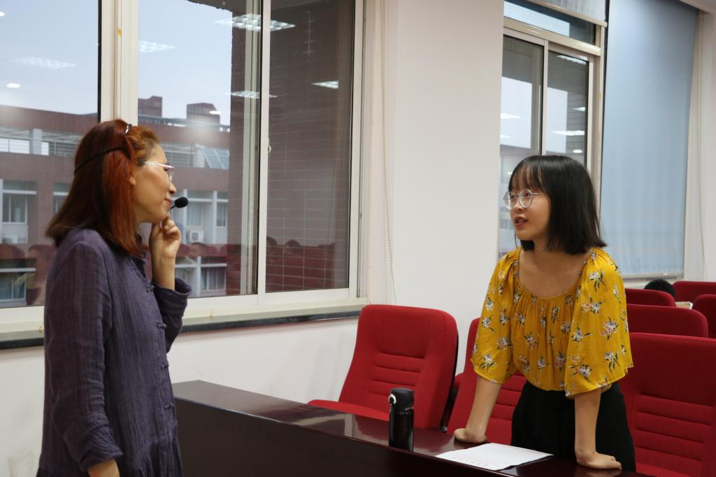 讲座渐入尾声,同学们向宁淑华教授提出自己的困惑:想学好吟诵,却无法把控怎么办?教授认为,作为初学者,应先于追求情感的表达,不急于追求技巧,不被规则束缚,教授还向大家分享了“吸气”式练腔法,来帮助打开声带。讲座最后,宁淑华教授颇有感慨,首次和工科学生开启诗词吟诵之旅,宁淑华教授说:“很忐忑亦很惊喜”。