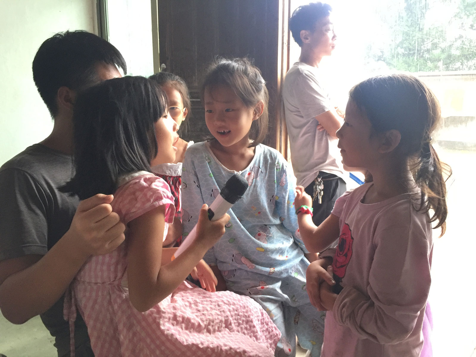 排练休息期间,小班的几个女孩子围着音乐老师一圈,一起继续熟悉《明日歌》。伴随着伴奏,围成一圈轮流拿着话筒唱。