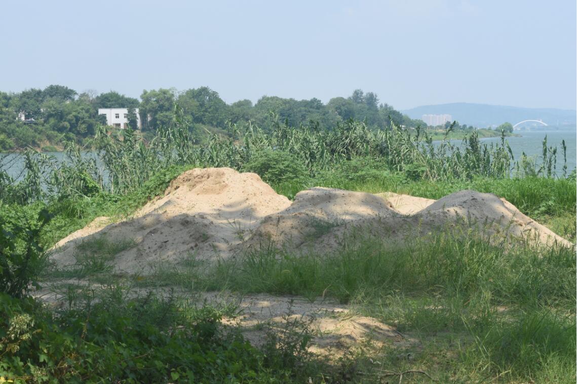 调研团成员在路平安老师的带领下先来到了鹅洲岛进行调查研究。鹅洲岛,位于湘江长沙段南端,是湘潭和长沙的水域交界处。此处为国家二级水源保护区,是长沙市城区重要的取水区域。据了解,鹅洲岛以前曾进行过旅游开发,岛上也曾有多处砂石堆放地点。