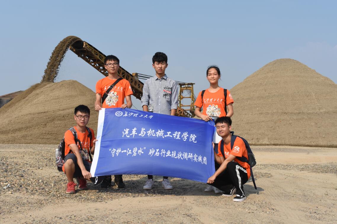 2018年8月28日,长沙理工大学汽机学院“守护一江碧水”砂石行业现状调研社会实践团开展了第一天的调研活动,调研地点为鹅洲岛和坪塘砂石基地。