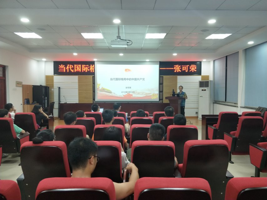 2018年9月19日晚,汽机学院于工科一号楼B-417举办第十四期匠心讲堂通识讲坛之《当代国际格局中的中国共产党》,本场讲座由张可荣教授主讲,他从四个方面为我们阐述了当代国际格局中的共产党。