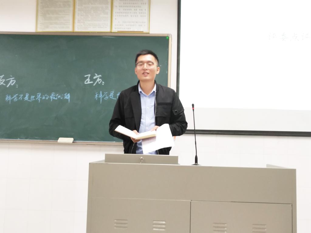 本场辩论赛正反双方围绕“科学是不是世界的最优解”展开辩论。开篇立论环节,正方从科学促进人类社会不断进步出发,指出科学有效解决了人类大多数问题,而反方则认为科学造福了人类,但是人类拥有对世界更大的自主权。攻辩环节,现场气氛迅速升温,双方辩手你来我往,却又不失风度,侃侃而谈,观众掌声不断。正方以科学解决人类问题和促进人类文明两个方面为佐证,以精辟的措辞指出了反方逻辑的漏洞。反方则以包括诗词哲学在内的人类世界将科学作为世界最优解不合理和科学只是在物理层面的某些领域为世界最优解为由论证自己的观点,以犀利的言辞层层剖析,步步紧逼。最后的总结陈词环节,双方辩手都在各自对手的逻辑层面漏洞进行逐个击破。最终,经过评委评定,正方获得本场比赛的胜利,反三辩潭小辉同学获得“最佳辩手”称号。